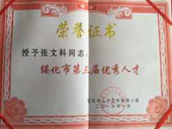 2016年被評為綏化市第三屆優(yōu)秀人才